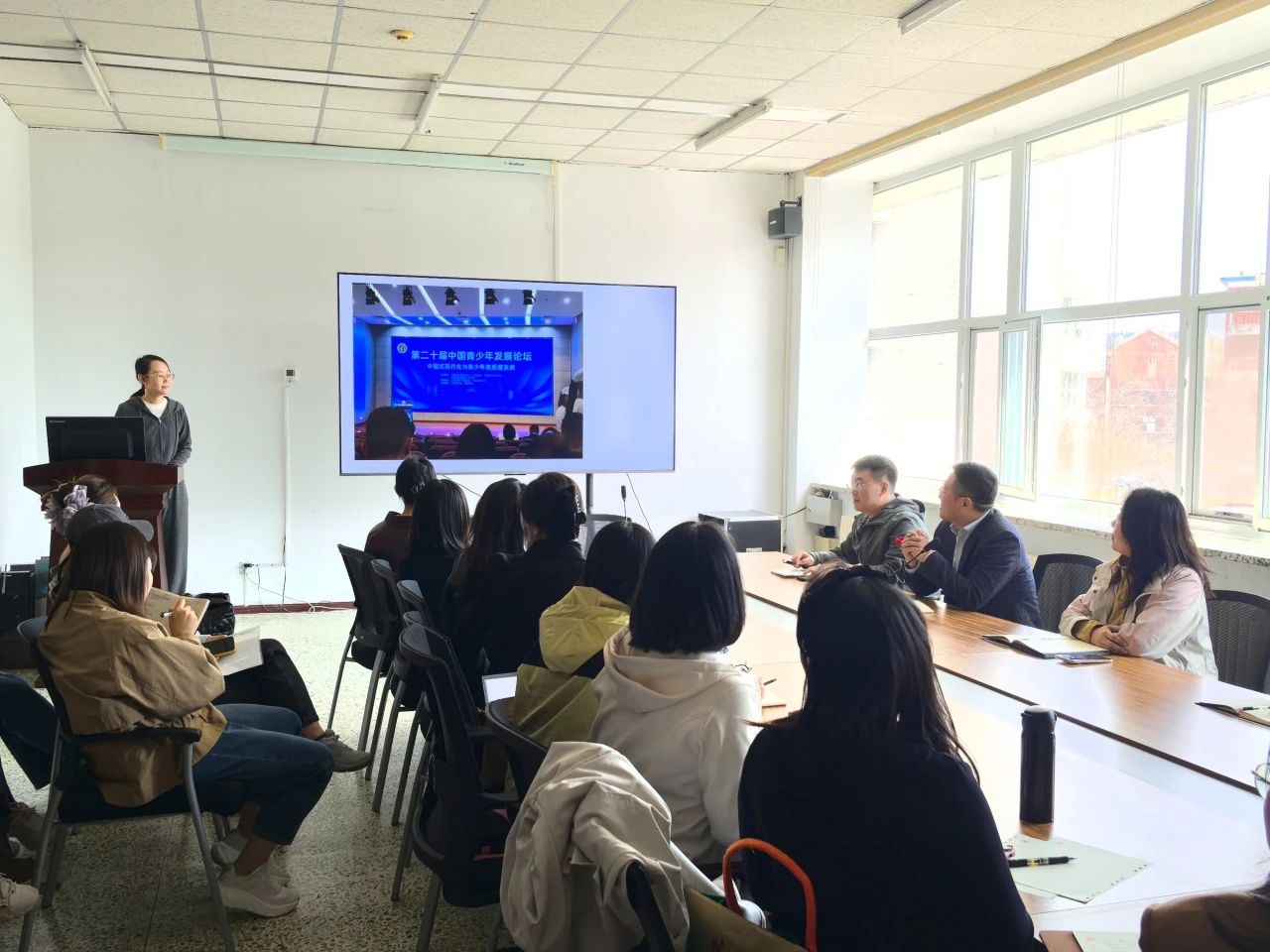 会上,形势与政策教研室主任魏向宇老师对近期参加的“第二十届中国青少年发展论坛”学术会议进行了交流分享,详细介绍了会议主要议程和专家主旨发言的内容。