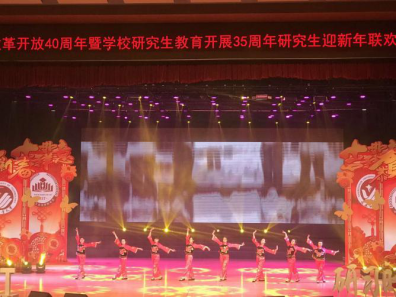 (通讯员:岳子琪)2018年12月28日,由学校研工部主办的“青春奋进新时代,研华筑梦正当时”2019新年文艺晚会在南湖校区老员工活动中心隆重举行。全校800余名研究生欢聚一堂,共迎新年。学院领导及2018级全体研究生出席并参与晚会活动。