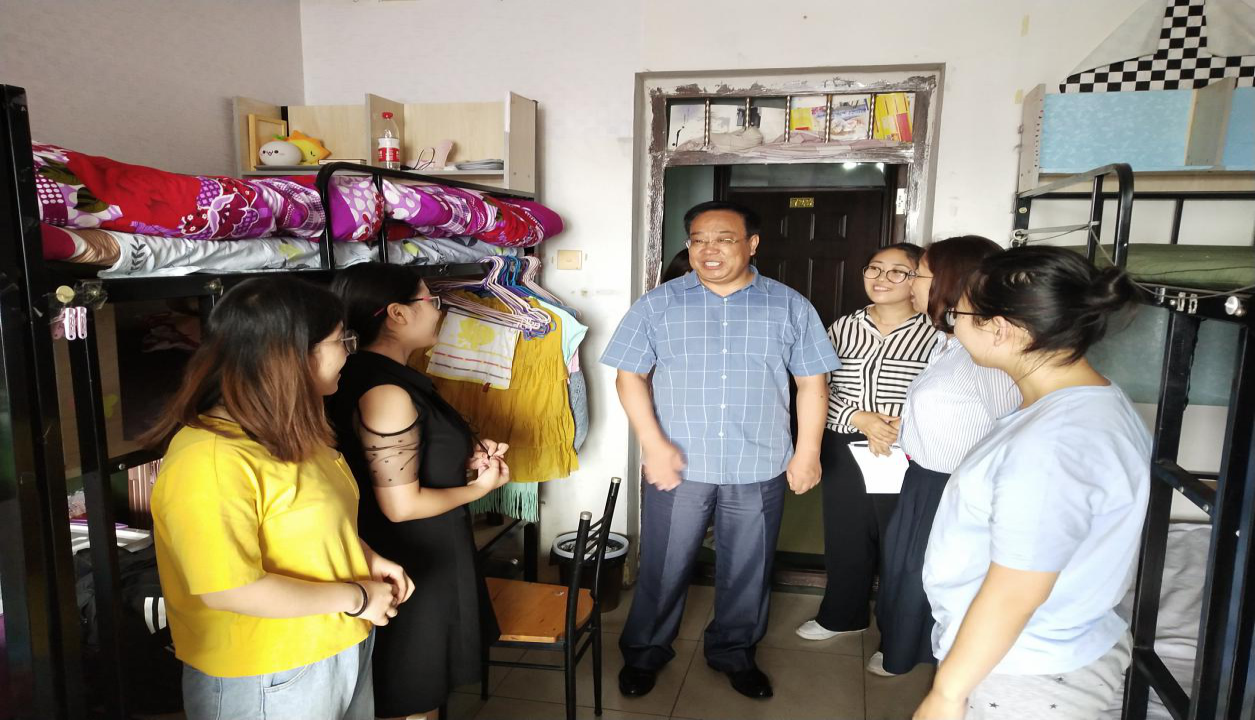 (通讯员:岳子琪)2019年9月6日,公司党总支书记朱兴国、副经理王晓光、辅导员宋海娇一行来到南湖校区员工宿舍,关怀慰问2019级全体新生。
