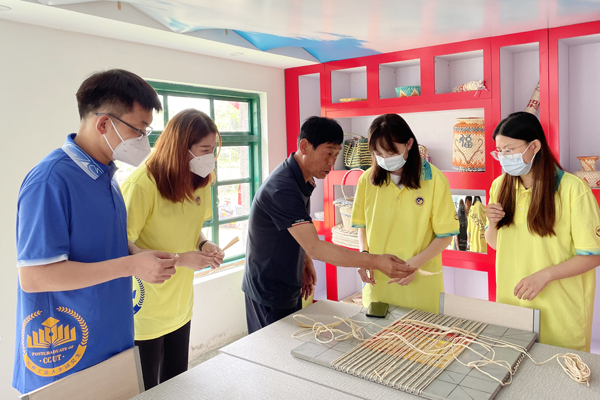 走进工艺实训基地,一件件精致的草编工艺品陈列在展架上。2019年,友好村成立了长春市绿森林农民种植合作社,主要从事草编事业,与同样以乡村文化为内核的乡村旅游联动发展。村民们将干的玉米皮浸泡后搓成绳,用巧手编出坐垫、草帽、背包等工艺品,编“废”为宝,点“草”成金。志愿者们也亲手体验了一下草编的乐趣。