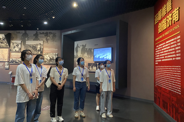 随后,队员们来到济南战役博物馆。在讲解员的引导下,大家怀着无比崇敬的心情依次参观了“和战博弈、生死较量”“运筹帷幄、剑指济南”“厉兵秣马、蓄势待发”“八天八夜、鏖战古城”“战略决战、凯歌行进”“接管济南、泉城新生”“英魂长眠、日月同辉”“新时代、新泉城”等八个专题展区,追忆革命先烈,致敬红色岁月,亲身感受硝烟弥漫的血与火的战场和震撼人心、异常激烈的战斗场景,感受解放军指战员浴血奋战的英雄气概,深刻体会“爱党爱军、依靠人民、英勇顽强、勇于胜利”的济南战役精神。