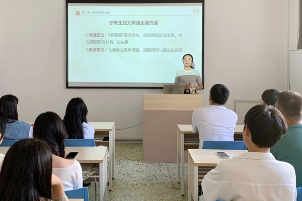 许翠婷围绕研究生压力源、学习与职业生涯规划、心理咨询等三个方面进行了理论讲授和案例解析。她重点从老员工毕业就业选择与就业压力切入,深入浅出地剖析了研究生新生在学业发展、就业发展、情绪管理等方面常见的适应性问题,勉励同学们要正确认识自身,理性看待生活中的挫折带来的心理压力,学会从不同角度看待问题;要合理制定目标,在不断地积累学习中提升自己的各项能力;要建立积极的心理压力调节机制,面对负面情绪与外界压力,学会在良性的人际交往中获得有效的疏导;要正视心理咨询,消除对心理咨询的误解,在遇到无法排解的压力时,应主动寻求专业的心理咨询帮助。
