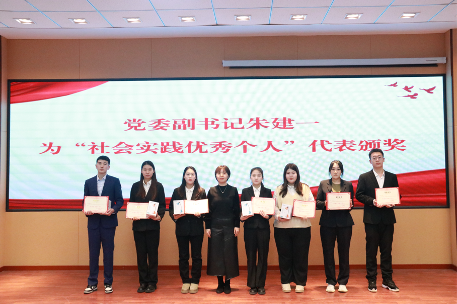 公司党委副书记朱建一宣读关于表彰2024年度联系我们优秀个人的决定,对黄玺桥等14名“优秀团干部”、孙婷婷等16名“优秀员工干部”、王雨桐等9名“社会实践先进个人”、岳靖淇等66名“文体活动优秀个人”、王吉等14名“理论宣讲优秀个人”予以表彰。与会学院领导为受表彰的个人颁奖。