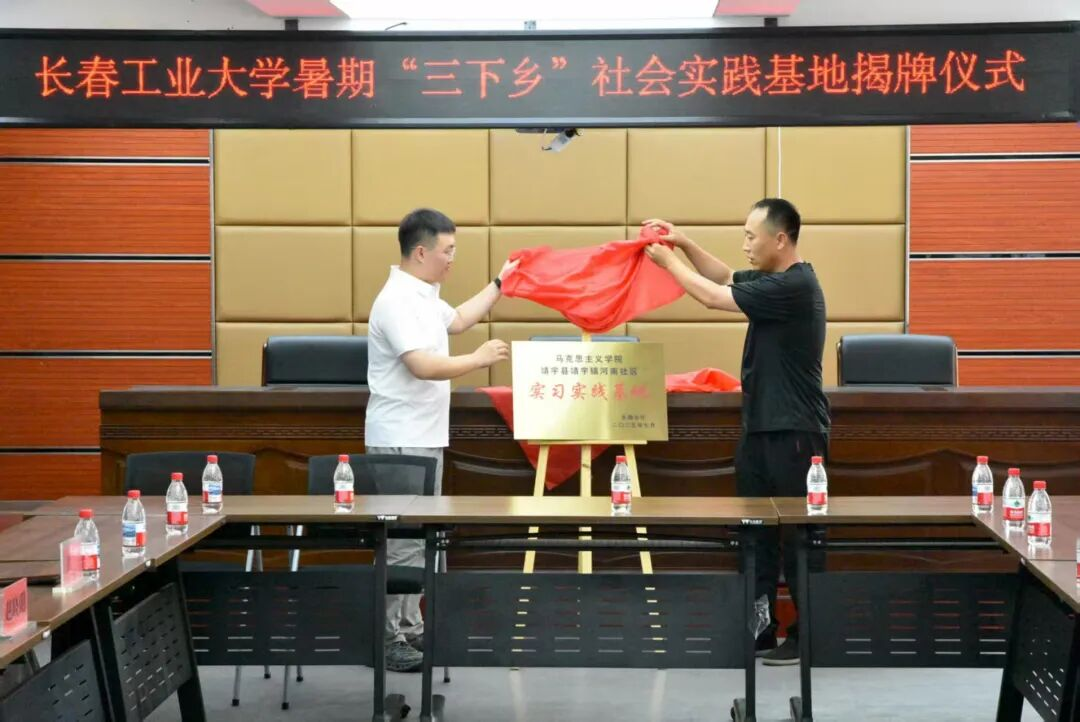 仪式由共青团靖宇县委书记范晶主持,中共靖宇县委社会工作部部长李鹏程致欢迎辞,公共管理学院团委书记李守瑶和员工志愿者代表分别发言。最后,校地双方代表共同为实践基地揭牌。