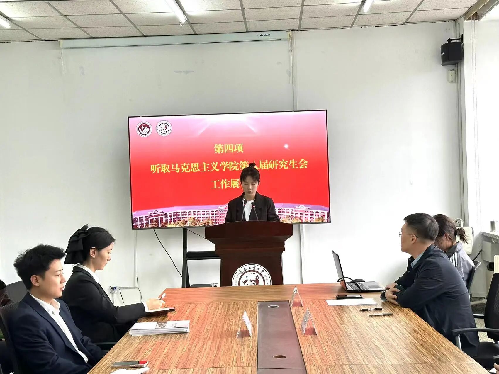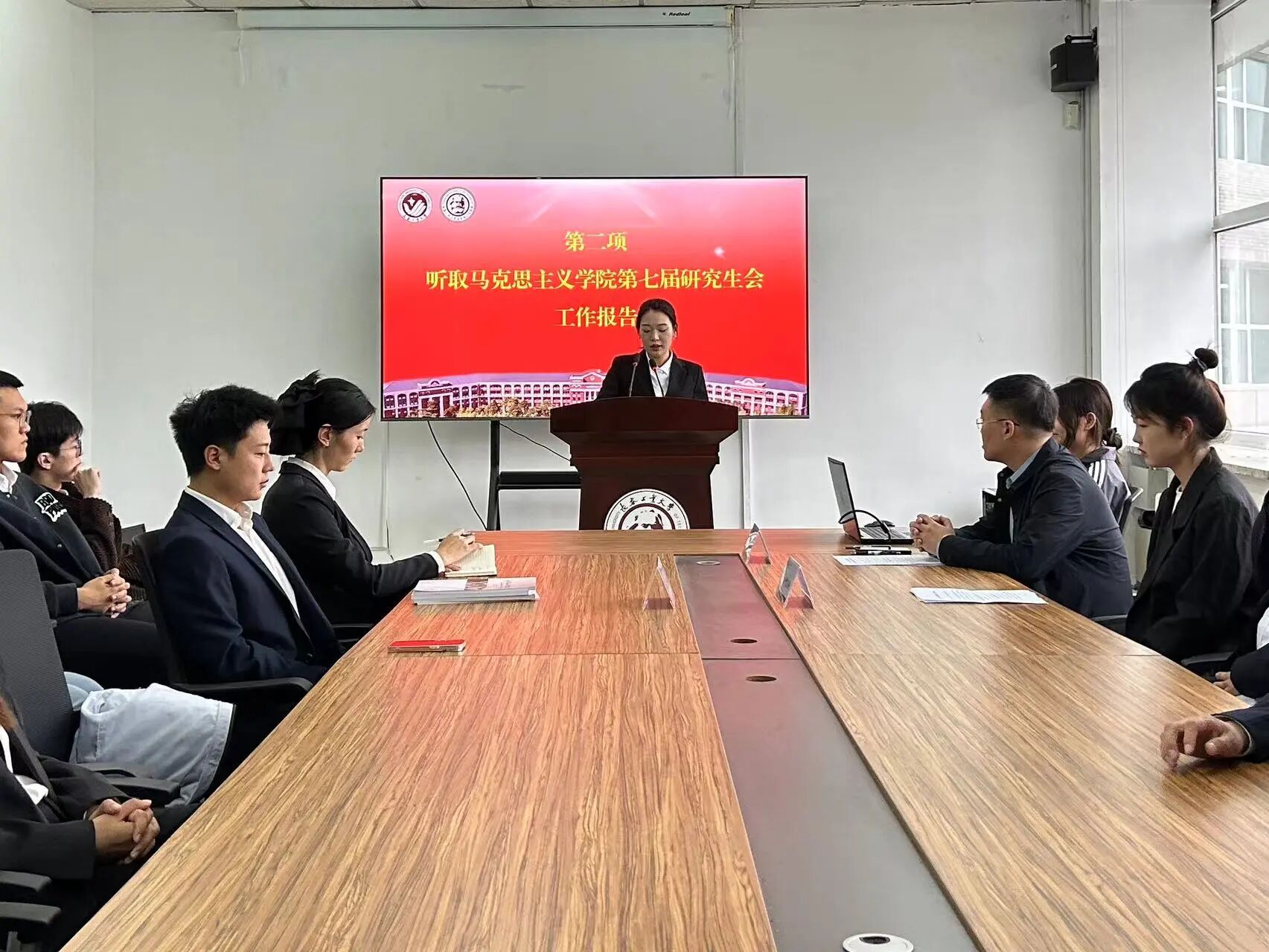 304永利集团第七届研究生会主席团成员侯雨萌代表第七届研究生会作《304永利集团第七届研究生会工作报告》,回顾了过去一年里公司研究生会所做的工作,并对新一届研究生会表达期望,希望各位研究生会工作人员和研究生代表能够不忘初心,继续推进学院各项事务发展。