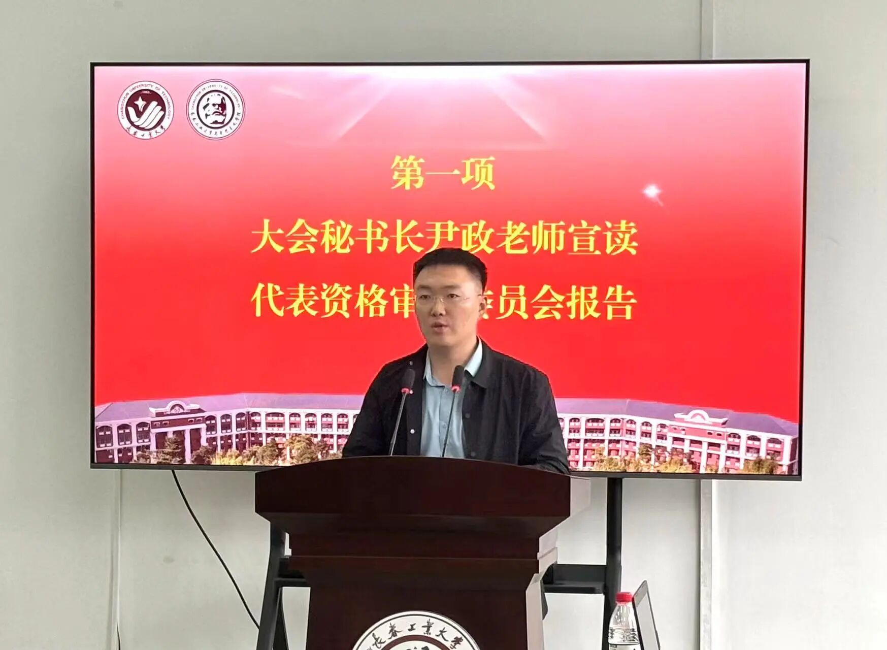 304永利集团第五次研究生代表大会秘书长尹政老师宣读代表资格审查委员会报告。