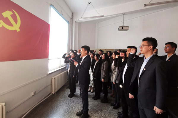 在公司党总支副书记、研究生党支部书记王权的领誓下,全体党员面向党旗、紧握右拳庄严宣誓。