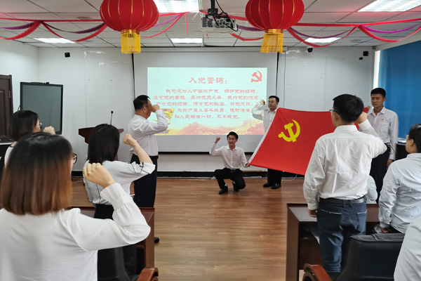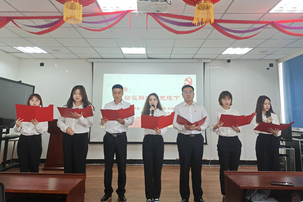 朗诵会结束后,举行了党员重温入党誓词活动。在公司党委书记朱兴国的领誓下,全体师生党员面向党旗,举起右拳,重温入党时的庄严承诺,不忘作为一名共产党员的初心和使命。