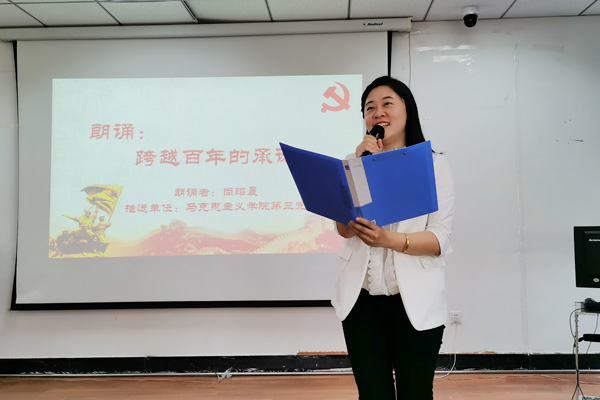 朗诵会上,师生们声情并茂、慷慨激昂地朗诵了一首首铿锵有力、鼓舞人心的红色诗歌,展现了革命先辈们坚定的理想信念、深厚的爱国情怀和顽强的斗争精神,艺术地表现了中国共产党100年来经历的苦难与辉煌,表达了全院师生“听党话、跟党走”的信心与决心,抒发了爱党、爱国、爱社会主义的真挚情感。
