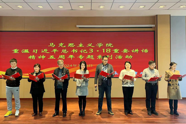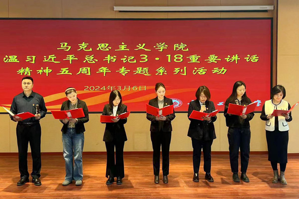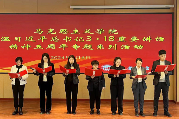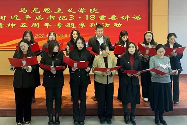 本网讯(通讯员 杨慧娇)为进一步重温习近平总书记“3·18”重要讲话精神,不断增强思政课教师的红色底蕴,厚植家国情怀,3月6日,304永利集团在综合楼报告厅开展了重温习近平总书记“3·18”重要讲话精神五周年专题系列活动之“上好思政课,当好引路人”朗诵会。活动开始前,学院全体教师集体重温了习近平总书记“3·18”重要讲话内容。