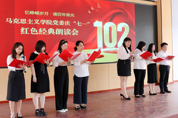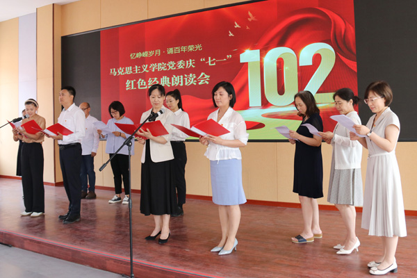 活动在慷慨激昂、催人奋进的诵读声中拉开帷幕。《再走长征路》深情演绎了献礼祝福党的生日,赓续红色血脉,汲取奋进力量,在攻坚克难的漫漫征途中寻找真理答案的艰辛;《传颂峥嵘岁月 接力育人大计》抒发了思政课教师在立德树人的过程中尽显踔厉奋发的勇气和坚毅;《英雄》深情讲述了书写在岁月长河中不容遗忘的英雄荣光;《南湖红船》领着所有人重走初心之路,回望风雷激荡的峥嵘岁月,捧读用热血与生命写就的红色华章;《诗颂芳华》以芳华诉说时代心声,以芳华执笔逐梦星辰;《十年,逐梦向未来》赞颂了热血青年以青春之我创建青春之未来的使命和担当。