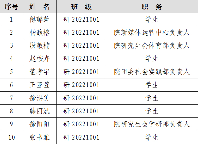 发展对象名单如下:
