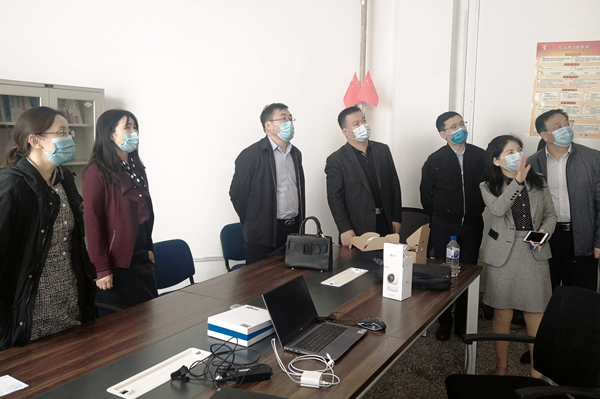 张明耀等一行听取了经理马光焱、副经理王晓光关于复试工作方案、组织机构、面试教师及复试试题准备、远程网络及设备准备和应急预案等总体情况的汇报,现场观看了面试流程演示,并与测试人员进行了远程视频互动。