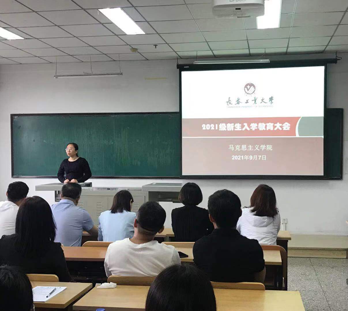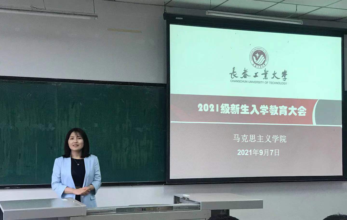 经理马光焱代表学院全体教师对新入学的2021级55名研究生表示热烈欢迎,她详细介绍了学院发展的历史沿革及取得的优异成绩,并对同学们寄语了希望,鼓励员工们要“学会思考,学会求教,学会坚守”,不负韶华、以梦为马。