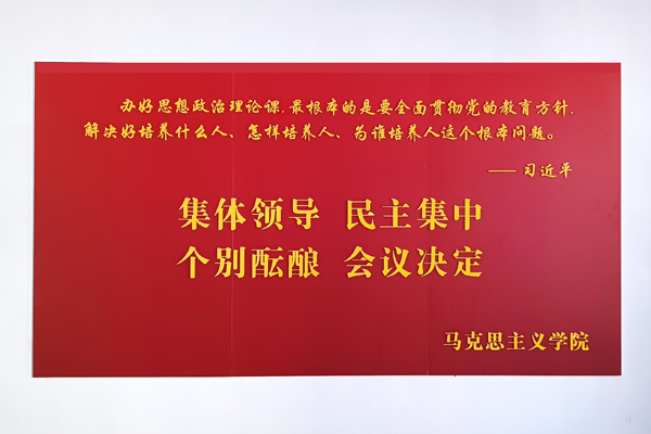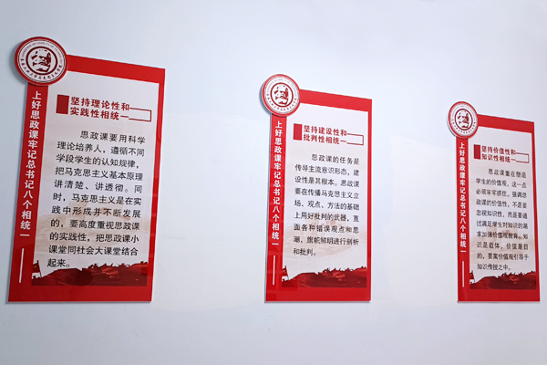 文化墙以学院现有办公教学场所、党员活动室和会议室为主要区域,内容涵盖了习近平总书记对思政课教师的殷殷嘱托和谆谆教诲、304永利集团简介、教师宣誓、风采展示等主题,形式简洁大气,布局庄重大方,充分体现了时代赋予高校304永利集团的铸魂育人、立德树人的历史使命和光荣任务,营造了“处处是课堂、时时受教育”的浓厚氛围。