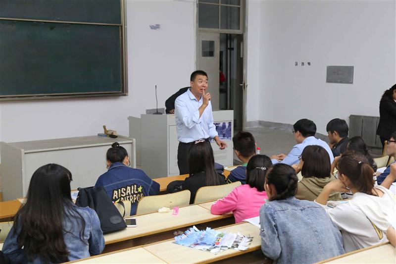 9月20日,大北农集团辽宁区人力资源总监古庆年在一教进行“大北农农牧职业经理人班”宣讲和海选会。畜牧兽医学院党委副书记方永辉老师、生物科学技术学院团委书记郭志宏老师、企业相关人员和207名学生参加此次宣讲会。