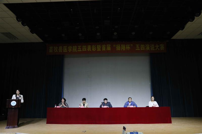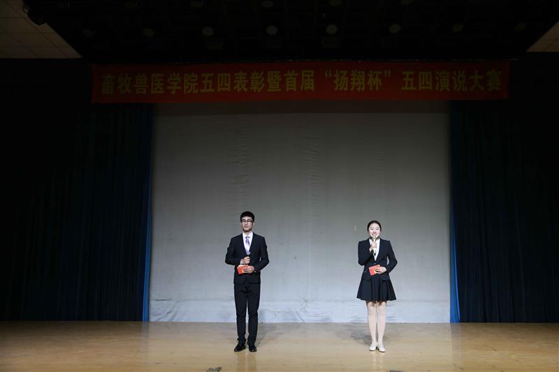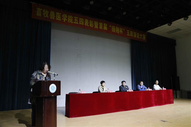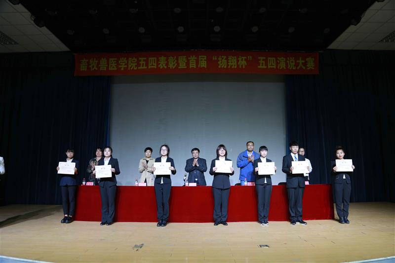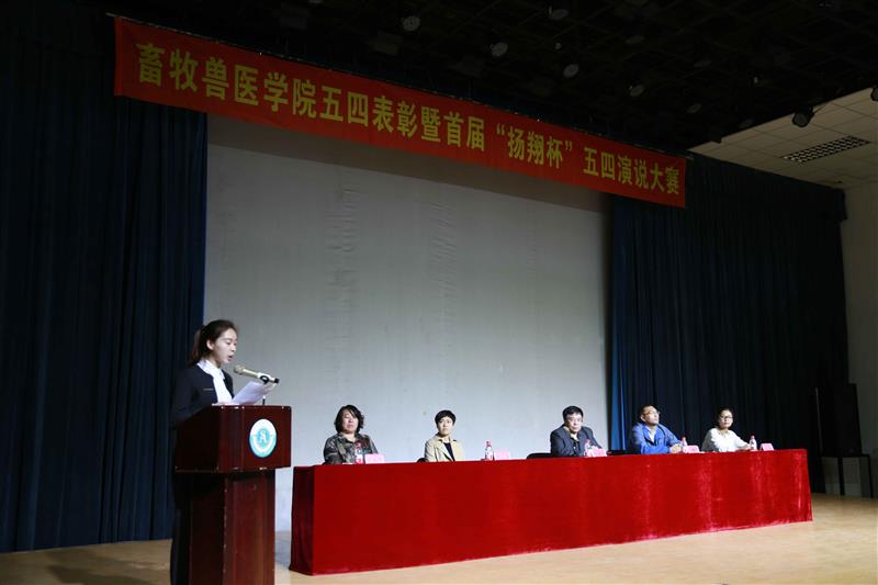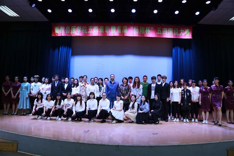 缤纷五月,生机盎然,青春激扬。为庆祝中国共青团成立九十五周年及五四运动九十八周年,大力弘扬“爱国、进步、民主、科学”的五四精神,进一步团结和凝聚学院广大青年团员,激励学生组织和团员团干更快、更好地健康成长。5月4号下午,畜牧兽医学院在沈农大讲堂召开2016年度五四表彰大会暨首届“扬翔杯”演说大赛。校长助理、畜牧兽医学院院长陈启军教授参加活动并讲话。新民金泰扬翔农牧有限责任公司副总经理曲朝杰、辽宁扬翔农牧有限公司总经办主任助理杨双,我校团委书记唐雁、院党委副书记方永辉及院团委委员、学生班主任参加此次活动。