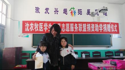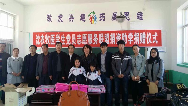 近日,畜牧兽医学院党委副书记方永辉、本科党支部书记陈胜然携学生党员志愿者服务联盟代表队不远千里前往朝阳市喀左县水泉镇二道门小学为两名留守儿童进行捐资助学。