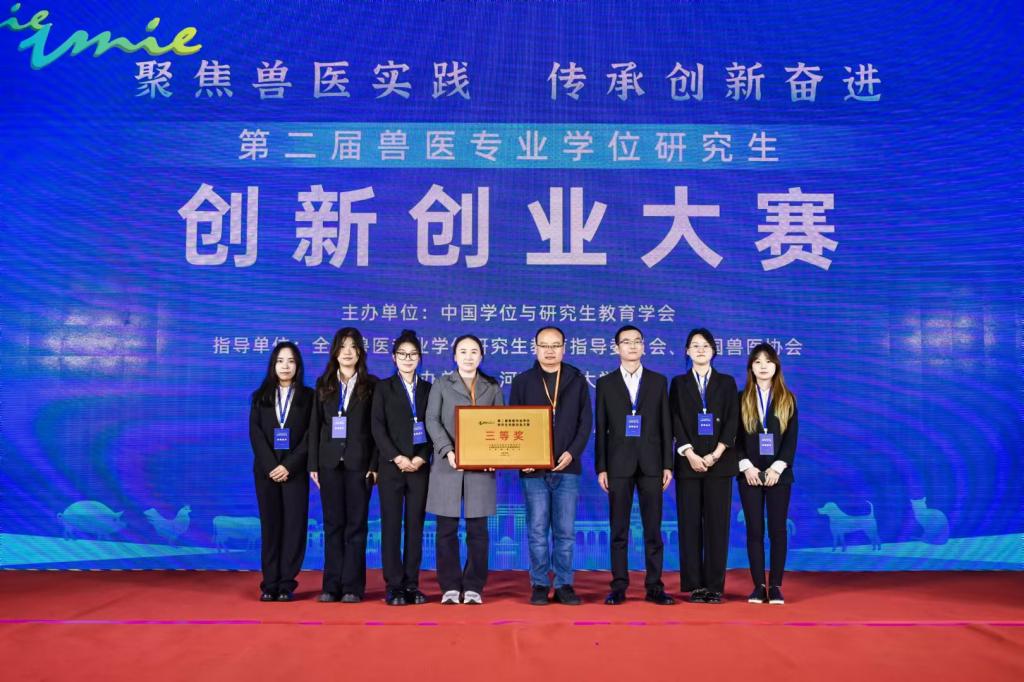 11月5日,由中国学位与研究生教育学会主办,全国兽医专业学位研究生教育指导委员会、中国兽医协会专家工作委员会提供学术指导,河南农业大学承办第二届兽医专业学位研究生创新创业决赛在郑州圆满闭幕。此次比赛由学院方永辉书记带队,共派出两支队伍参赛,均在此次比赛中取得佳绩。本届兽医专业学位研究生创新创业大赛以“聚焦兽医实践 传承创新奋进”为主题,旨在以赛促学提高兽医专业学位研究生实践创新能力,推动兽医领域高层次应用型人才培养提升,促进兽医专业学位教育高质量发展。