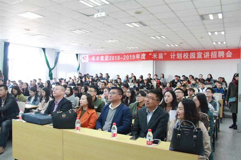 10月19日下午,禾丰集团在二教513举办“禾苗”计划校园招聘会活动,禾丰集团辽宁区人力资源总监付明、沈阳禾丰水产公司执行总经理李秀春、辽宁禾丰销售总经理陈光、辽宁区禽料沈海销售公司销售总经理韩常昕、海城禾丰销售总经理喻振、农大禾丰总经理助理王若楠等6名企业领导及多名我校在禾丰工作的毕业生来校招聘,牧医学院党委副书记许海涛老师,辅导员王晓娟老师、陈胜然老师、徐畅老师出席招聘会,160余名本科生、研究生毕业生参加招聘会。